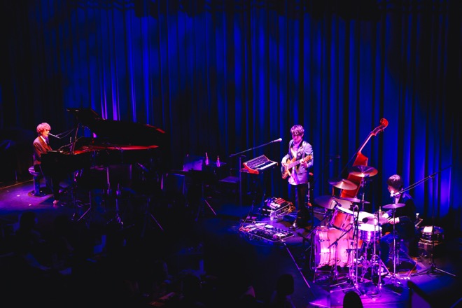 セットリストは、代表曲のほか、懐かしの初期曲、最新アルバム『WEAVER』収録曲まで幅広く選曲。3人だけで披露する楽曲もあれば、WEAVER のストリングス編曲に欠かせない雨宮カルテット(雨宮麻未子、三國茉莉、角谷奈緒子、渡邊雅弦)を迎えた場面もあり、生楽器の良さを活かしたBillboard Liveならではのアレンジを繰り広げていく。杉本のピアノの粒立った音色、煌めきと艶、奥野がエレキベースで繰り出す超絶技巧とコントラバスの響き、河邉のドラムの体に響くキックとシンバルの残響音。それらすべての細部までしっかりと聴き取れる、至福の音楽体験。また、ドリンク、フードメニューのコラボレーションもBillboard Live公演の楽しみの一つ。オリジナルカクテルを手にメンバーは全員立ち上がり、デビュー記念日を祝してファンと乾杯。温かで幸福なムードは高まっていくばかりだった。