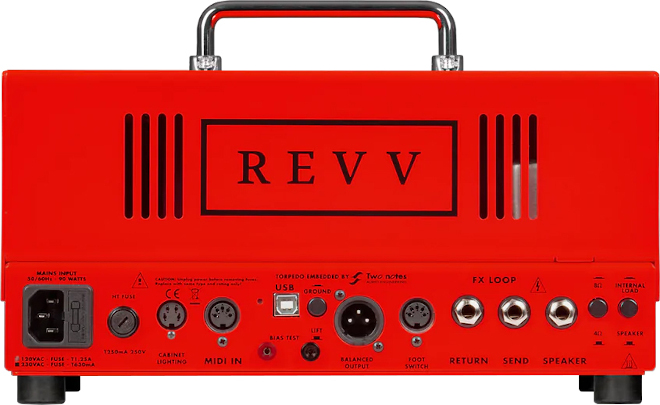 プリ真空管にECC83を3本、パワー真空管に6V6を2本使用した伝統的なオール・チューブ・ギター・アンプながら、デジタル・レコーディングにも対応した拡張性を装備。通常のアンプ同様、好みの外部スピーカー・キャビネットに接続して使用できるほか、スピーカー出力を使用せず、バランスXLR出力端子を使用してミキサーやインターフェイスへのダイレクト出力も可能。バランスXLRからの出力では、6パターンのTwo notes Torpedoヴァーチャル・キャビネットを利用することができる。USB端子を利用してPCなどへ接続すれば、Two notesのTorpedo Remoteソフトウェアを用いることが可能になり、EQのコントロールやリヴァーブ空間の選択、キャビネット・シミュレーターやマイク・シミュレーターを利用した緻密なサウンド・メイキングが実現。さらに同ソフトウェアとMIDI端子を使用してセッティングをすることで、手持ちのMIDIコントローラーでヴァーチャル・キャビネットやチャンネル・セレクト、アグレッション切替えなどのユーザー設定を増やしたり、お好みに合わせた実用的なプログラム・チェンジを行うことも可能だ。