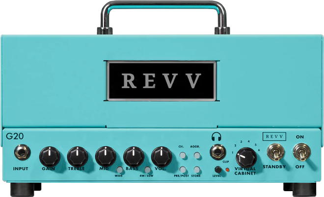 G20は、ライト・ウェイトでスモール・サイズの筐体に歪みサウンドに重きを置いたアンプで、4W/20Wの切替え可能な出力を備えている。フロント・パネルにはゲイン、トレブル、ミドル、ベース、ヴォリュームの非常にわかりやすいシンプルなコントロールに加え、チャンネル、アグレッション、プリ/ポスト、ワイド切替えおよびストアの5つのスイッチを配置。特徴となるアグレッション・スイッチはチャンネル2選択時に3つのレベル(Off/Blue/Red)を切替え、異なる歪みのキャラクターから選択ができる。背面にはエフェクト・ループやMIDI端子も装備。