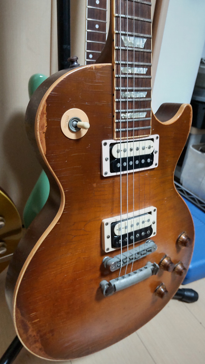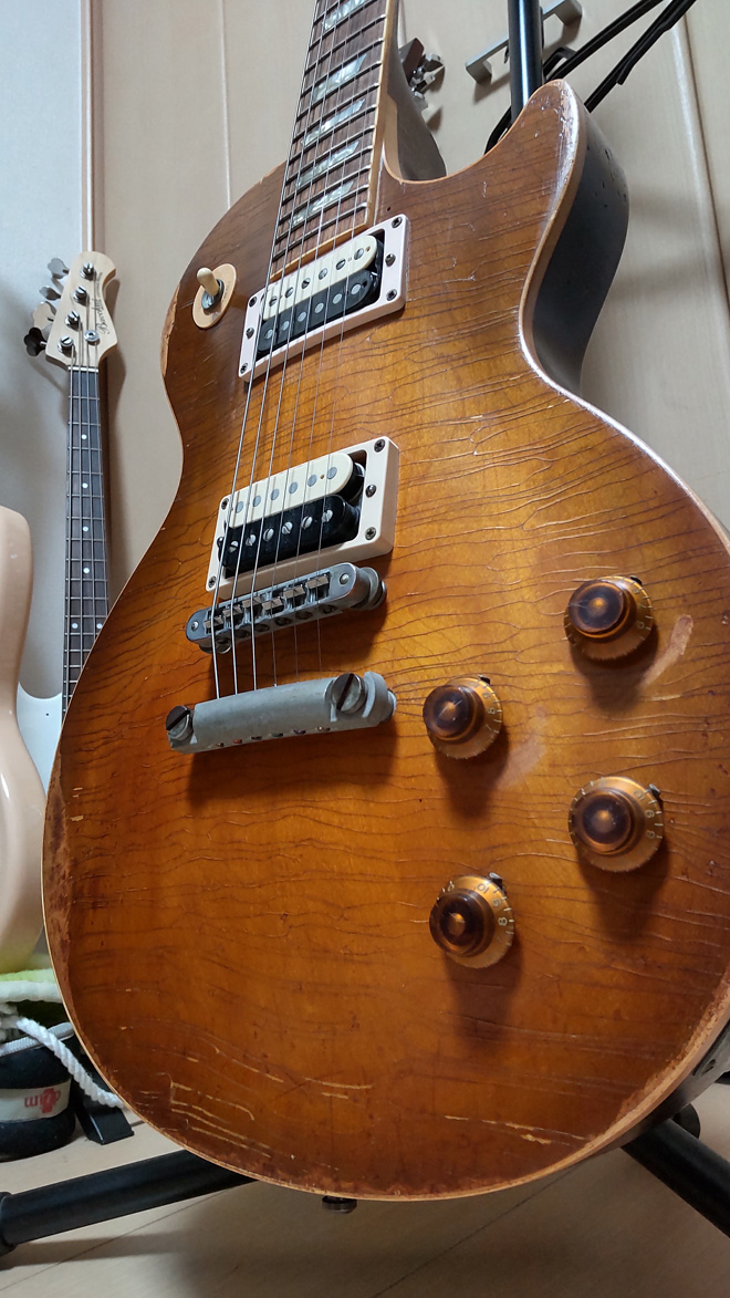 まだ学生の頃、ユーズユアイリュージョンのスラッシュに憧れ、レスポール買えば同じ音出せると思って購入しましたが、やはり全く違う。以来スラッシュどこぞでピックアップやリフィニッシュ当然、いじり倒し、方向性もワケわからなくなりました。なんだかんだで、26年以上、長い付き合いですが、これからもズットよろしく。