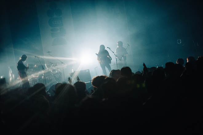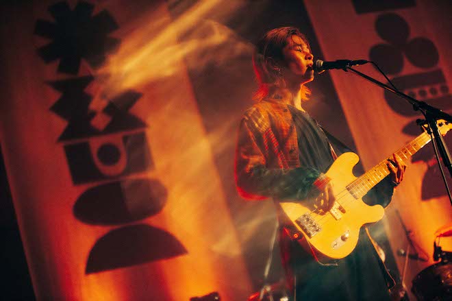 ライヴ中に比喩根(Vo,G)も触れていたが、ツアータイトルになったロードムービーとは旅で起こる出来事を通して登場人物が成長していく物語のこと。豊かな音楽性を誇る彼女たちではあるが、キャリアとしてはまだまだ浅い。本ツアーを通してどんな成長を遂げたのか、満員のオーディエンスが期待していると、定刻を少し過ぎたところでゆったりと比喩根、玲山(G)、小﨑(B)、ジャスティン(Dr)の4人が姿を現す。