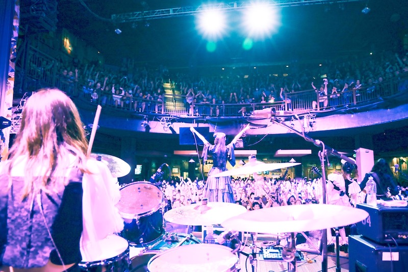 ダラスと同様ステージが高い会場のため、観客の頭上から放つ激しい演奏に合わせて、観客も前のめりに拳を突き上げる。毎公演披露していた小鳩ミク、KANAMI、MISA、AKANEによるインストゥルメンタル曲だが、この日は「onset」「from now on」と立て続けに2曲披露。ハードロックの本場アメリカにおいて演奏力がなければ沸かせることのできないインスト曲で、観客を熱狂の渦に巻き込んでいく。