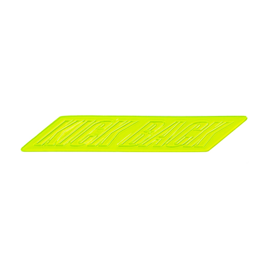 あわせて、法人特典の「KICK BACKステッカー」は、蛍光グリーンの型押しPVCステッカーの写真が公開となった。