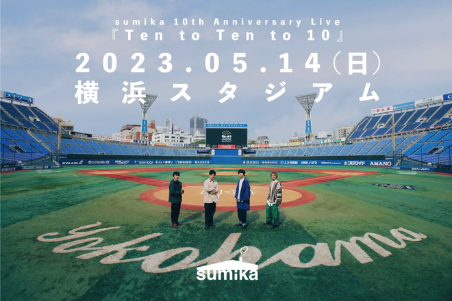 2023年に結成10周年を迎えるsumikaが、5月14日に神奈川・横浜スタジアムでワンマンライブ<sumika 10th Anniversary Live『Ten to Ten to 10』>を開催すると発表した。