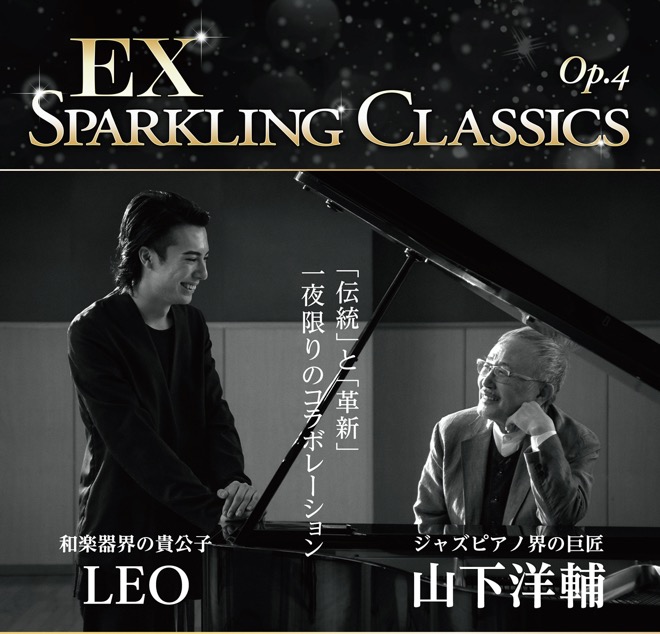 そんな、2人が<EX SPARKLING CLASSICS Op.4>の舞台で初競演。伝統ある和楽器界に新風を吹き込むLEOと、ジャズピアノ界に革新を巻き起こし、そして牽引し続けてきた山下洋輔。その、一夜限りとなるこのコラボレーションは見逃せない。