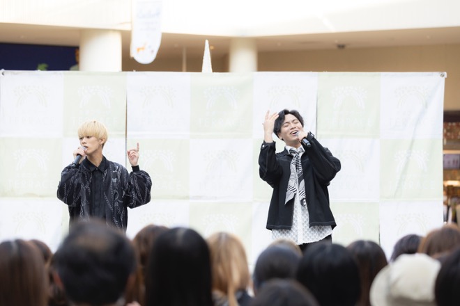 all at onceの最新楽曲「プレイメーカー feat.大野雄大(from Da-iCE)」のCDリリース記念イベントが11月3日、横浜市青葉区のたまプラーザテラスにて開催された。同楽曲はTVアニメ『名探偵コナン』エンディングテーマとして現在放送中だ。