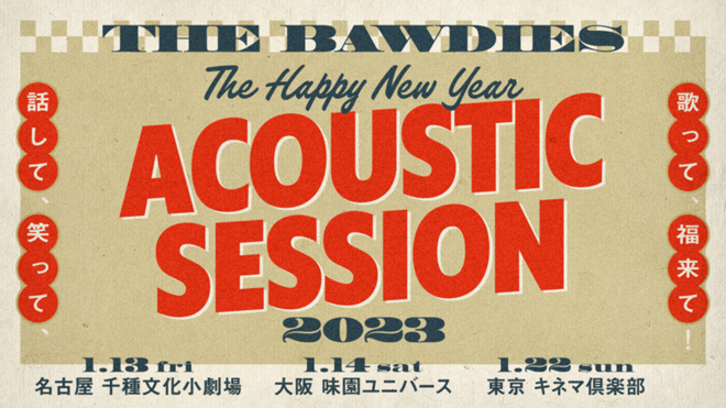今回のツアーは「アコースティック&トーク!」をメインに、2023年の年明けを皆で、話して、笑って、歌って、福を呼ぶというTHE BAWDIESらしい新春ロックンロール・パーティーということ。チケットの最速先行は、本日よりTHE BAWDIES CLUBにてスタートした。
