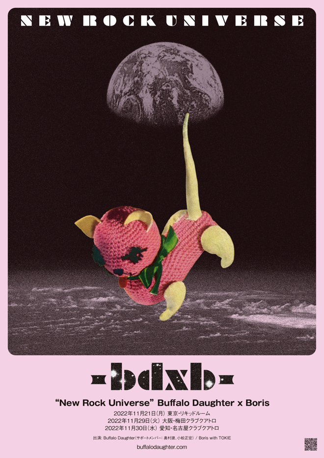 両者が2マン形式で共にライブツアーを行うのはこれが初めて。11月21日の東京・LIQUIDROOMを皮切りに、29日の大阪・UMEDA CLUB QUATTRO、30日の愛知・NAGOYA CLUB QUATTROの3公演が行われる。BorisはベーシストにTOKIEを迎えた“Boris with TOKIE”の特別編成で2002年発表の『Heavy Rocks』(通称:オレンジ盤)にスポットを当てたライブパフォーマンスを、Buffalo Daughterは最新アルバム『We Are The Times』と2023年春にアナログ盤で再発される『New Rock』(1998年)、『I』(2001年) のリリースを記念したスペシャルセットを披露する予定とのことだ。