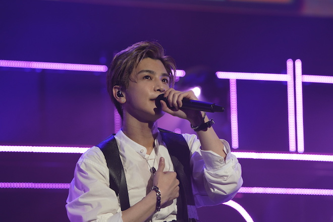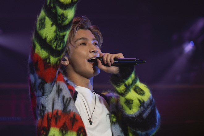 「Distance」や「言えない」といったバラード曲は、歌うというより演じるような表現力でさらに深い世界観を作り上げる。ダンサーとの「DANCE TRACK」では、コンテンポラリー色の強いダンスで客席を圧倒。トークコーナーになると、気軽にファンの質問に答えながら心の距離感を感じさせないコミュニケーションを展開する。