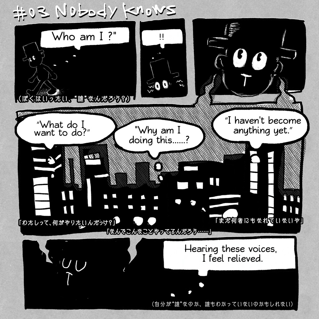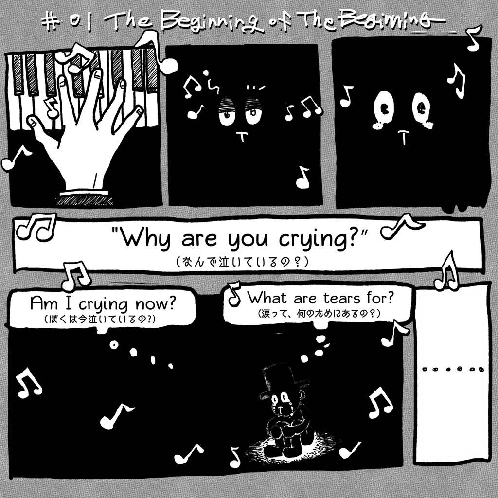 リンク先をクリックしてみると、TiUというアーティストのホームページに遷移し、広告で使用されていたアート風アーティスト写真が大きく表示され、画面左には各SNSアイコンが並ぶ。そのアイコンの中に、何故か“コミック”のアイコンがあり、クリックしてみると可愛らしいキャラクターのストーリーコミックが出現する。