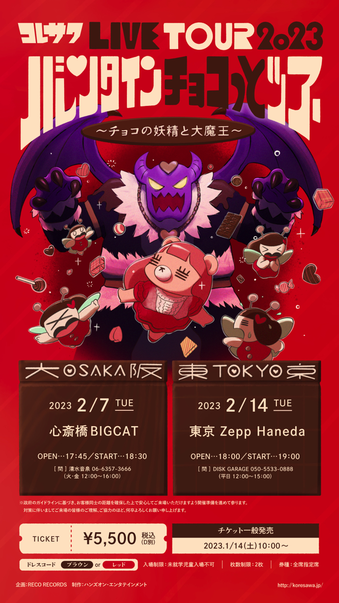 なお、コレサワは2023年2月に<コレサワ LIVE TOUR 2023 バレンタイン チョコっとツアー〜チョコの妖精と大魔王〜>を東京と大阪で開催することも決まっている。