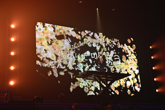 映像で今回のライブでも自身の活動の軸として掲げる「挑戦」をしっかりと見せると、続いて披露されたバラード「your words」ではリフターが上昇し、高い位置から伸びやかな歌声を誠実に届けた。