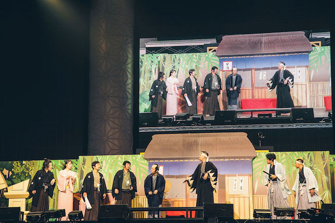 また、ライブ中盤では、ケツメイシのツアーでは定番となっているコントコーナーも。「時代は変わるぜよ!!」のタイトル通り、“幕末”をコンセプトにしたステージセットで幕末の志士に扮したメンバーによるコントが繰り広げられる。お笑い芸人アンタッチャブル・柴田英嗣脚本演出、オテンキのGOが監修を担当し、目まぐるしい世の中・情勢の変革というメッセージも含んだコントで会場は笑いに包まれた。