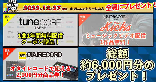 ビートグランプリMUSEUM 2022 supported by TuneCore Japanの詳細:https://beatgp.com/