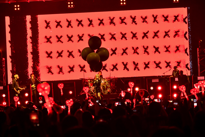 こうしてひたすらアップビートで攻め続けたアヴリルは、アンコールになってようやくスローダウン。前述したように冒頭から喉は絶好調だったが、10年代と00年代の彼女を象徴する二大バラードで、いよいよそのパーフェクトなヴォーカルをじっくり堪能させてくれた。1曲目は「ヘッド・アバーヴ・ウォーター」の表題曲、そしてもう1曲は誰もが待っていたファーストからの「アイム・ウィズ・ユー」だ。どちらも絶望の淵から救いを求める曲であり、自分の強さだけではなく脆さや弱さも率直に綴ってきた、アヴリルらしさを象徴していると言えるのだろう。それはまさに彼女の言葉が共感を呼ぶ理由のひとつでもある。オーディエンスに手を差し伸べて、あの澄み切った声で《あなたと共にある (I’m With You)》と繰り返し歌いかけたアヴリルと、「ああ、だから彼女の歌を聴き続けてきたんだな」と絆を再確認したファンも多かったんじゃないだろうか?