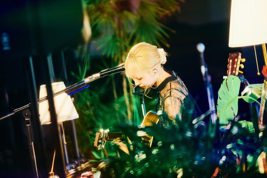 「私の部屋に遊びに来た感じで楽しんでもらえたら」というのも、「atELIER -アトリエ-」ツアーのテーマ。「Rhythm Nation」(ジャネット・ジャクソン)、「踊(Odo)」(Ado)のカバーでは、“普段もこんなふうにいろんな曲を弾き語りしてるんだろうな”と思わせる遊び心たっぷりの演奏を披露。ステージに置かれたランプ、テーブル、観葉植物などもこのライブの親密なムードにつながっていた。