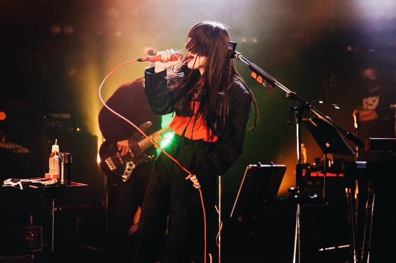 「グルグル」では、緊迫したムードから一転してバンドのグルーヴに乗せて「盛り上がっていきましょう」と体を揺らし、心地よいフロウを聴かせる。ゾクゾクする低音ボイスでの囁きとポリリズム的なアンサンブル、そしてエクスペリメンタルな展開で観るものを引きずり込んで行く「凝視」から、伸びやかなボーカルやフェイクがエモーショナルな「奇術」、変幻自在なシアトリカルなロック「貪欲」が、息つく間もなく続く。前半から、ディープだ。