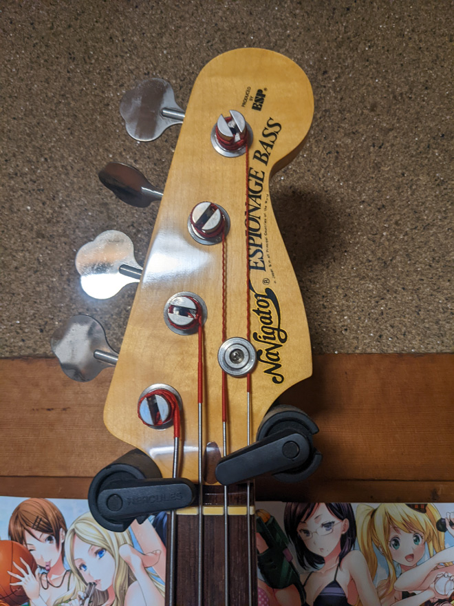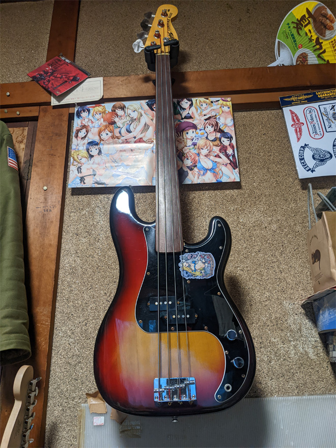 これは、今年の冬に入手したんですが、中古で出ることも珍しいナビゲーターのプレベタイプのフレットレスです。馴染みの楽器屋さんだったのでお願いして、お金のことは数回の分割払いしてもらい入手しました。ちなみに、一般的な相場より、かなり格安にしていただいたことは内緒ですw