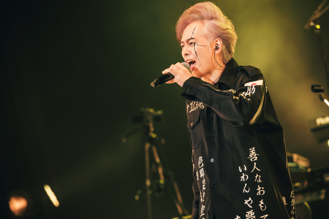 その景色に「素晴らしい!」とペンライトを回す大槻が「ありがとう! 感謝します!」と贈った本編ラスト曲は「いくぢなし(ナゴムver.サイズ)」。40周年を迎えた記念作の制作にあたり他アーティストとのコラボを考えていたところ、「一番ブッ飛んでいる若者は過去の自分たちだった」という発見から叶ったセルフカバーは、ポエトリーリーディングと激情ヴォーカルが交錯するカオスな原曲を踏襲して、若さゆえの衝動と手練れの成熟が共存するものに。最後はリリースから37年を経た今の目線で締めくくるかと思いきや、さらに当時の音源をサンプリングして若き日の自分が“この根性なしが”と今の自分を断罪するという仕掛けも鮮烈で潔い。