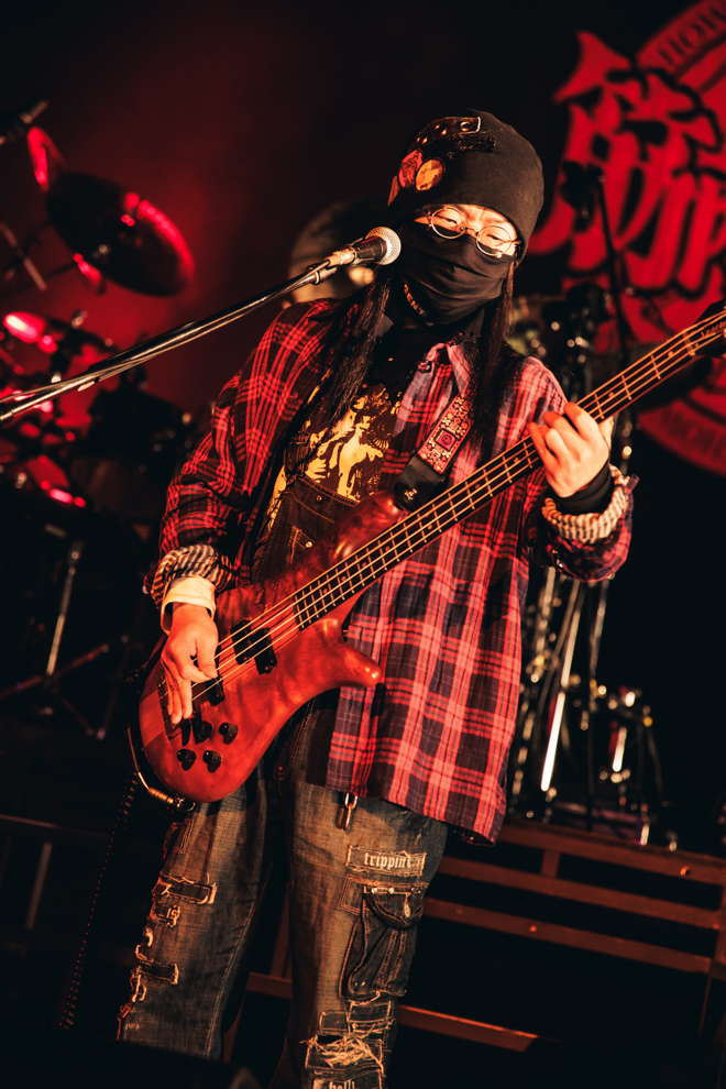 アンコールでは、これまた40周年記念作でセルフカバーした34年前の空手バカボン曲「7年殺し」を披露。リズム隊と本城のギターがファンキーなノリの土台を作り、その上でソロを掛け合う橘高と三柴には互いへのリスペクトも覗く。客席との写真撮影を挟み「今年もお世話になりました。良いお年を!」という大槻の言葉に続いて、ライブを締めくくったのは「釈迦」。おなじみのモンキーダンスもペンライトのぶん派手さを増して、遠慮なく会場を揺らしていく。最後に「筋肉少女帯40周年、大槻と内田に大きな拍手を!」と橘高が求めると喝采が湧き、ステージに残っていた内田が「Merci beaucoup。Salut!(=どうもありがとう。またね)」とフランス語で返す場面も。いわば“亀の甲より年の劫”を、あらゆる面で彼らは着実に体現している。