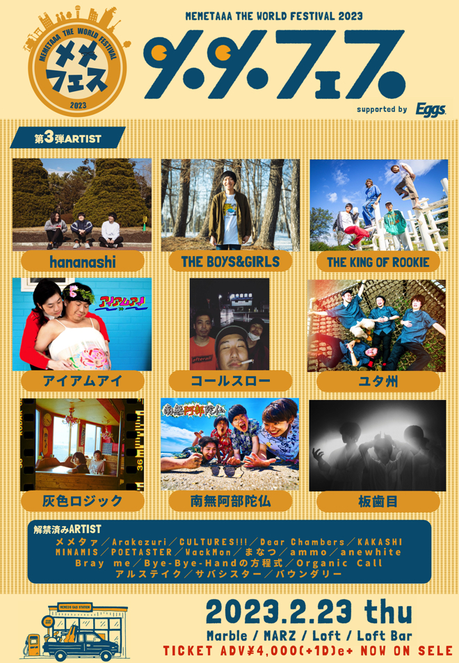 メメタァが2023年2月23日に東京・新宿で開催する<メメタァ・ザ・ワールド・フェスティバル 2023>の出演アーティストの第三弾発表が行われた。