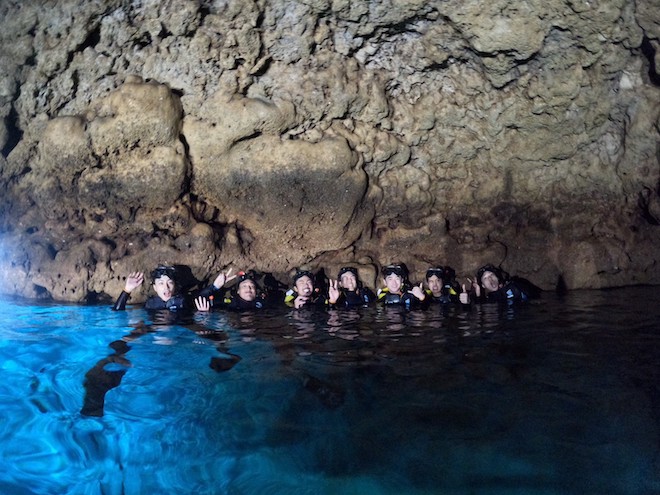 真栄田岬の崖下にある洞窟に入れるNo.1シュノーケリング・体験ダイビングスポット。神秘的な青色に輝く絶景を楽しめます。他にもカヤックツアーなどのアクティビティも体験できます。また近接する施設では、海を眺めながらBBQもできます。