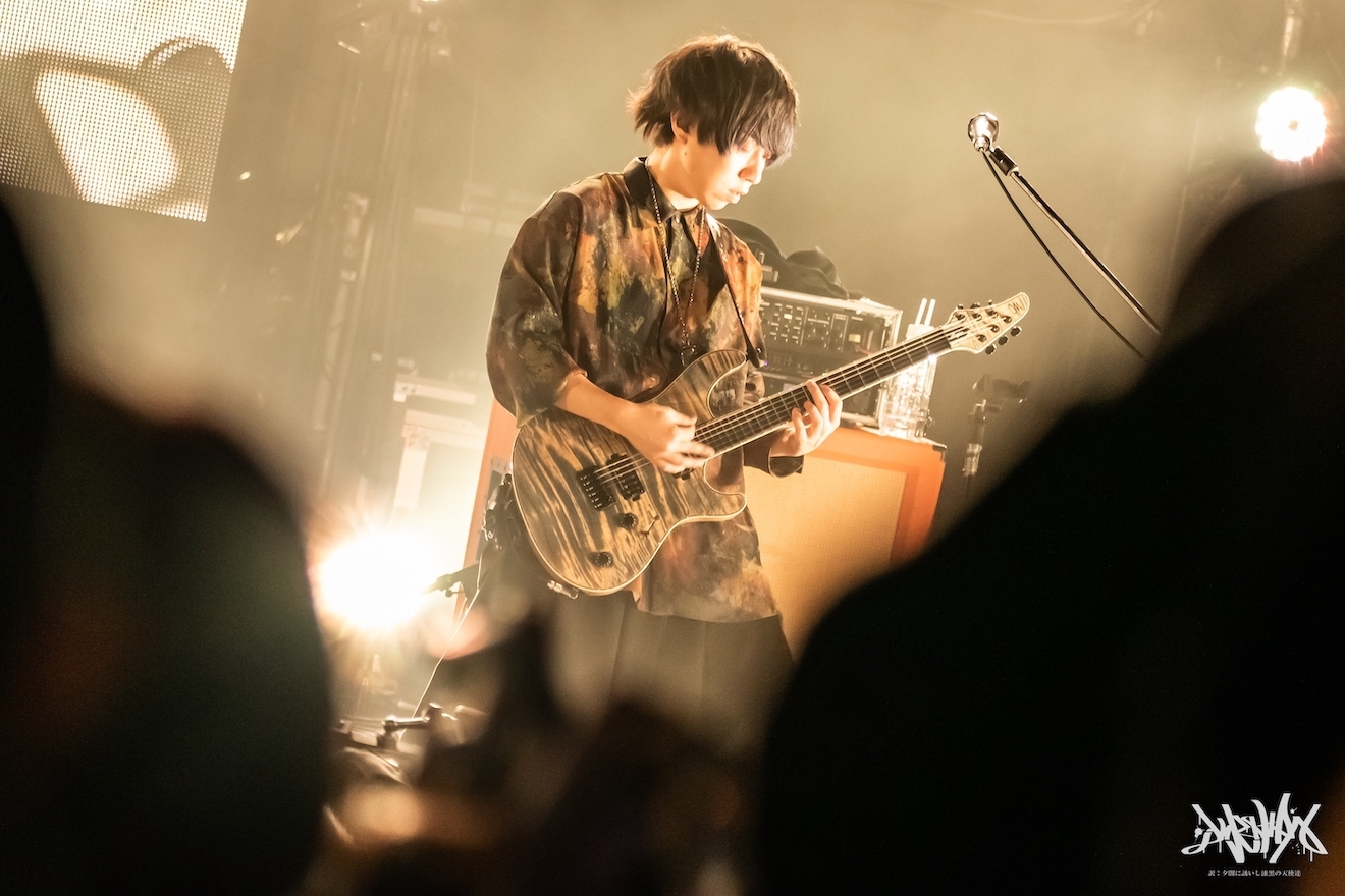「We Are 健康人間」以降は、カラフルな歌詞字幕や映像などクリエイターらしいVJ演出を活用しつつ、痛快なパフォーマンスを繰り広げていく夕闇。「幸せな時間が始まった。そうじゃないか!? お前ら」と小柳が檄を飛ばした「Super Ultimate Happy Happy Song」では、ステージ後方の巨大モニターに千葉の笑顔がパッと抜かれてたまらない気持ちに。中央のお立ち台に乗ってギターソロを華麗に弾く彼の姿も本日で見納めだが、メンバーはこうして4人で演奏ができていること、ライブができていること、その幸せを噛み締めるように序盤の3曲を一心不乱に駆ける。となれば、こちらも頭を空っぽにして楽しむのみだ。