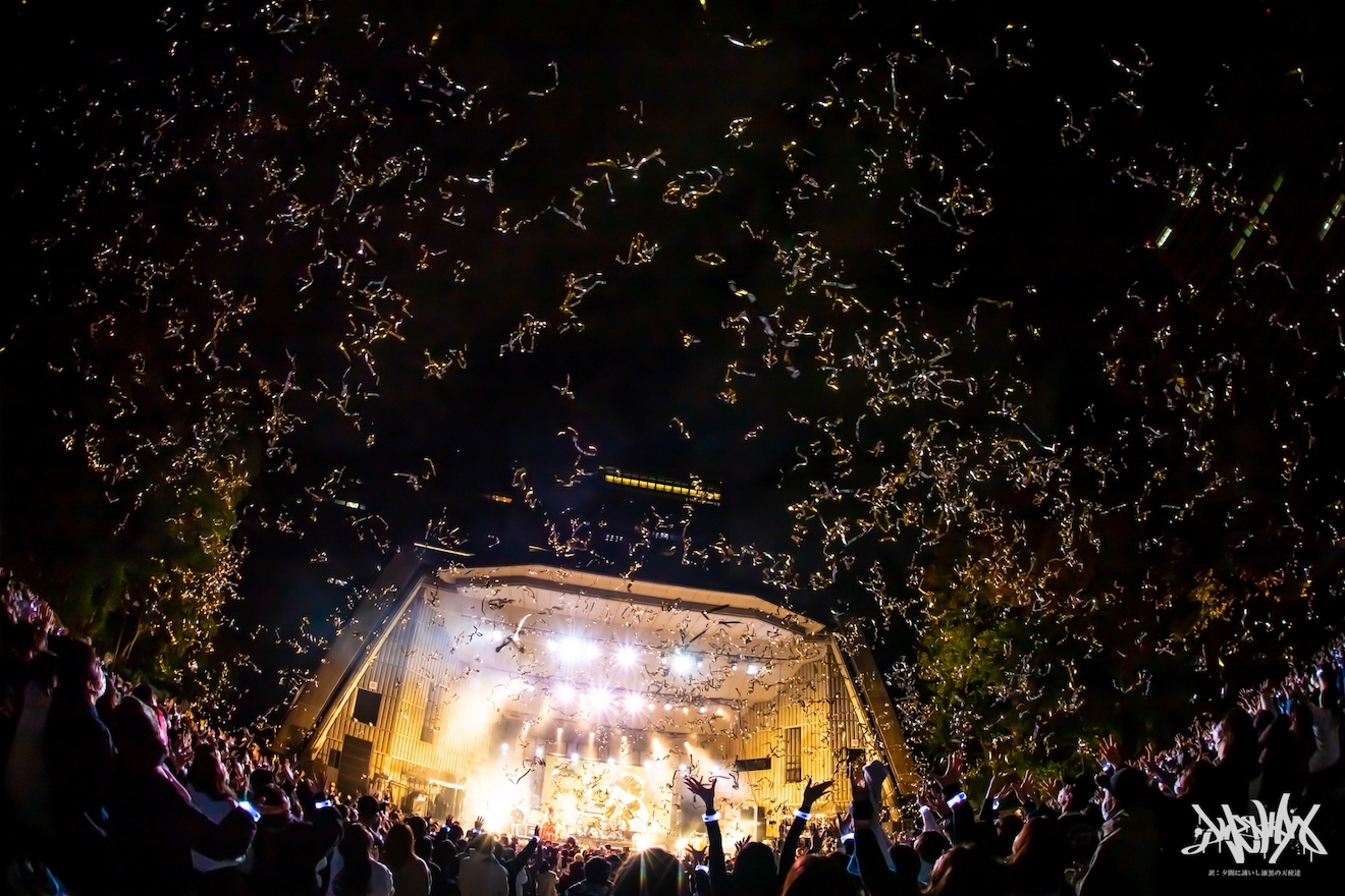 バンドが下した決断を踏まえて、身を委ねるように小柳が問いかける。本編ラストはにっちのドラムを軸に壮大なグルーヴで聴かせる「忙しい夜が終わる頃に」。“終わらない明日の先で 見たことない 日々を探してる” “この場所でまた 始めよう”といった歌詞がじんわりと胸に響き、客席には涙を拭って見守る人も多かった。千葉は卒業してしまうけれど、今日が夕闇の新たなスタートラインになってほしい。野音に足を運んだファンのほとんどは、4人の想いを受け止めながらそう願っていたのだと思う。