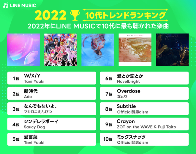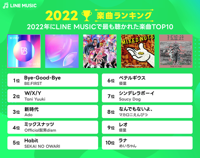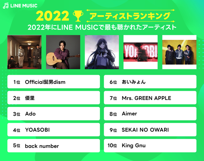 LINE MUSIC、2022年最も人気だった楽曲、アーティストを発表