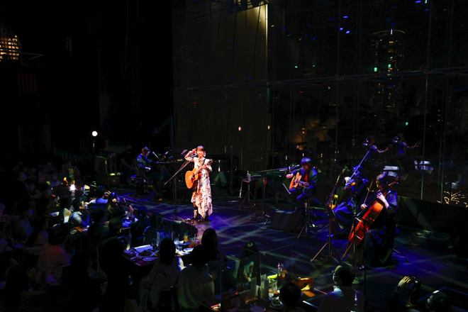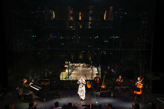 MCに入ってもいつものmiwaらしく、ここまで演奏してきた楽曲についてメンバーと振り返ったりしながら心地よいトークを展開していく。観客との距離が近いこともあり、観客の反応を見ながらコミュニケーションをとりながら和やかにトークは進んでいく。「ここからは冬らしく、ビルボードライブらしくバラードを歌おうと思います。少し日常を忘れていただいて、大切な思い出や大切な人を重ねながら聴いてください」と始めた楽曲は「またね」。イントロがスタートするやいなや、ビルボードライブ東京ならではのステージバックのカーテンが開いていき、miwaの後ろに東京の夜景が広がる。夜景を背負ったmiwaの歌をゆっくり聴けるという、目でも耳でも贅沢にmiwaのライブを楽しめる空間に。そして、今日のシチュエーションにぴったりの楽曲「月食 ~winter moon~」をしっとりと、会場に詰め掛けた観客にひと言ひと言を丁寧に届けた。