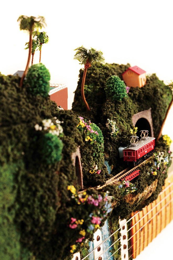 高中正義:3台作ったんだよね。ボディトップで走るギターが1台目で、2台目か3台目はトンネルと通ってこっちから出たり入ったりぐるぐる回る。でも電車って邪魔だよね(笑)。