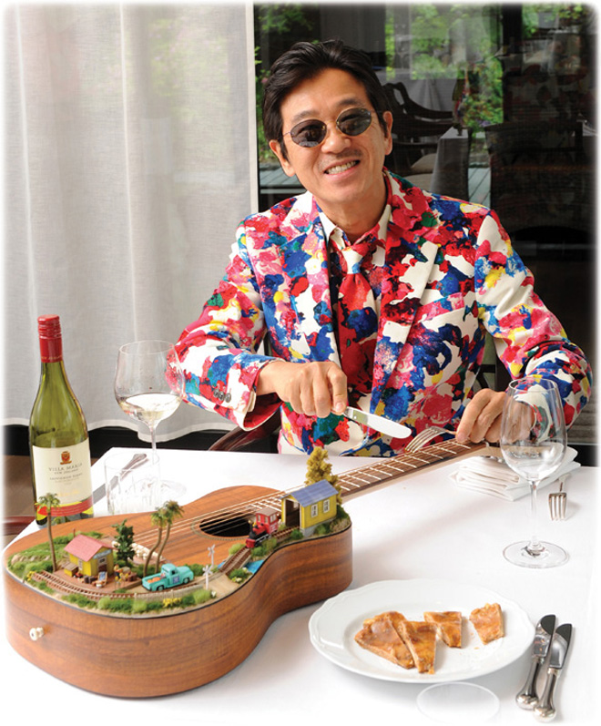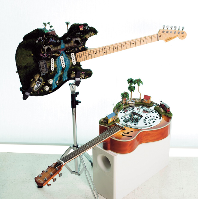 高中正義:中学ぐらいの時にNゲージのジオラマを作ろうとして途中で飽きて止めちゃったことがあるんだけど、NHKでジオラマを作る番組を見ていて「楽しいなあ」って思って。その鉄道模型オタクの諸星さんという人にメールしたのね。「初めまして、高中と申しますが僕のギターに線路引いて走らせてください。打合せは軽井沢で白ワイン飲みながらやりましょう」って言ったら来てくれて。で、作ってもらったんです。