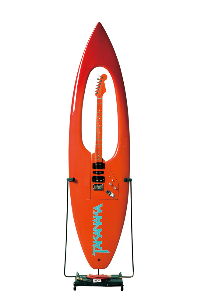高中正義:変な話…成毛滋さんが亡くなったとき、ちょっと考えちゃって。「生きてるうちだよな、好きなことができるのは。死んじゃったら何もできない」…それで、サーフボードギターを作ろうと思っちゃったんだよ。ちょっと飛躍し過ぎちゃったんだけど、「ああそういえばバブルぐらいの時、サーフィン流行ってたな…俺の曲、それに合う夏の曲あるなあ…」って思ってたら、サーフィンをギターにしたら面白いのかなって。作るの大変だったみたいなんだけど。
