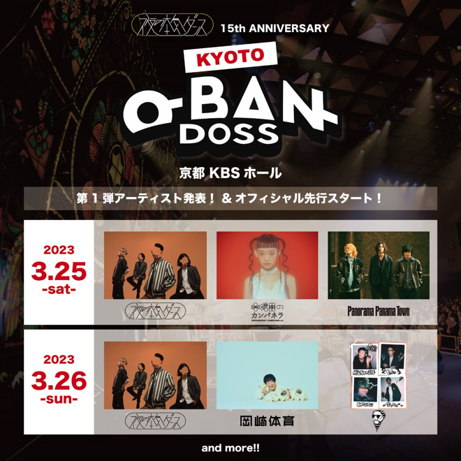 <O-BAN-DOSS>は、夜の本気ダンスがメジャーデビュー前から定期的に行ってきたイベントだ。今回はバンドの結成15周年を記念して、スペシャルバージョン<KYOTO-O-BAN-DOSS>が2日間にわたり開催される。