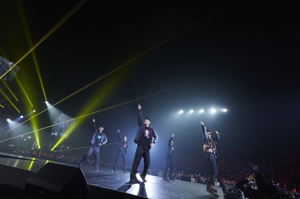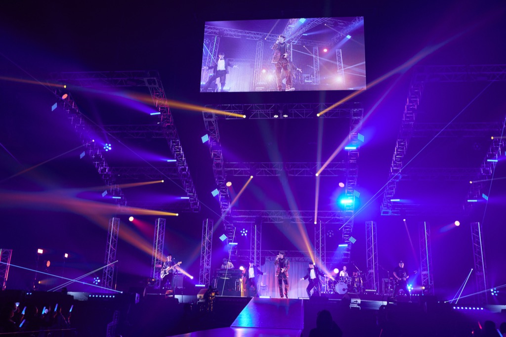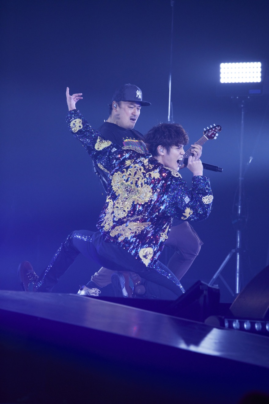 アンコールの1曲目「Kiss×Kiss」では久しぶりにトロッコの演出も組み込まれ、シャボン玉とたくさんのキスが降り注ぐアリーナをゆっくりと一周。MCでは、映像で披露した漫才についてや次回作の告知に加え、ダンサーFUMI&HIDEによる埼玉トークや客席を往復するビッグウエーブなどを楽しんだ。