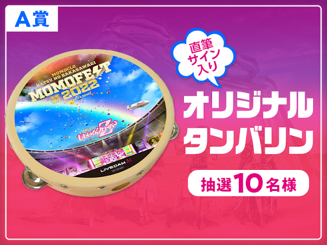 そのライブの映像作品『ももクロ夏のバカ騒ぎ2022 -MOMOFEST-』の発売を記念して、直筆サイン入りオリジナルタンバリンや、非売品グッズなど豪華賞品が当たる歌唱キャンペーンが1月10日よりスタート。リリースポスターが当たるTwitterフォロー&RTキャンペーンも12月21日より実施中。こちらは1月9日(月)応募締め切りとなるので、ご参加をお忘れなく。