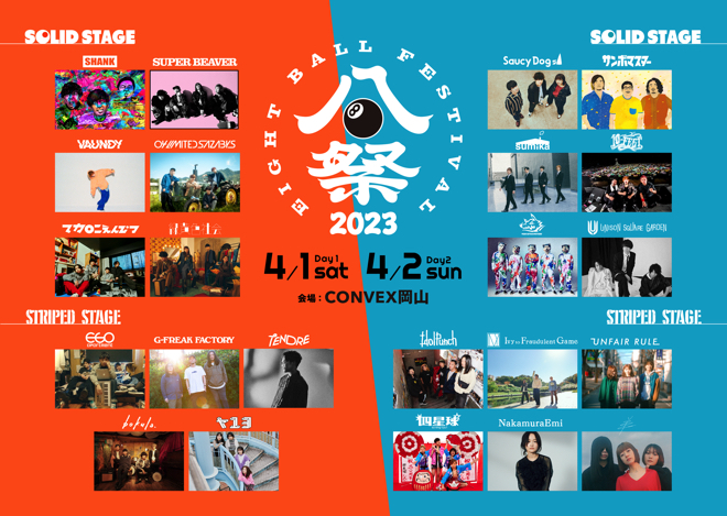 岡山に新たな春フェス誕生、<EIGHT BALL FESTIVAL 2023>開催決定