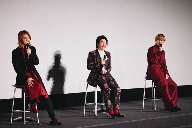 東京・ユナイテッド・シネマ豊洲では、高倍率となったプレミアチケットを手にしたファンを前に、Mrs. GREEN APPLEのメンバー3人が登壇して初の舞台挨拶を行った。さらにその模様は同時に全国の映画館35館に生中継された。