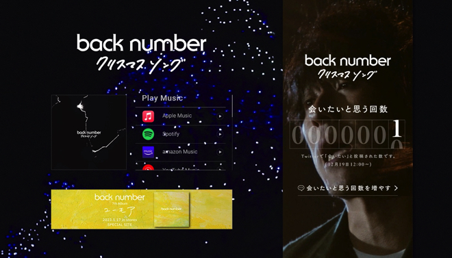 back numberの「クリスマスソング」にちなんだキャンペーン<#会いたいと思う回数カウンター>がスタートする。