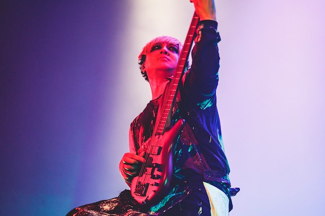 YUKKE(B)、ミヤ(G)、サポートメンバーのアレン(Dr)、逹瑯(Vo)がステージに登場すると、一気に熱は高まった。その中、メンバーはそれぞれ深々と一礼。その姿は、オーディエンスへの感謝を示すと同時に、これから約20年前の自分たちと邂逅する儀式の始まりのようにも見えた。