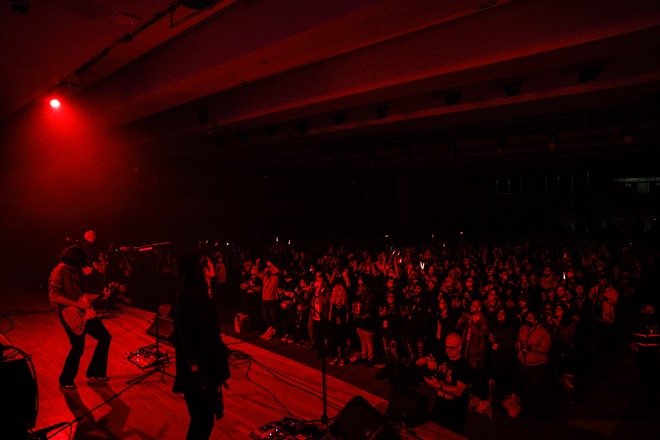この発言に対して磯部が「同じ曲をもう一度? 本当に?」と二度確認していたことからも、アンコールが本当に想定外のものだったのだろう。しかも川上は、「日本では弾かないから、今回はギターを弾かない。でもさっきよりもラウドにやるよ」と宣言。シーケンスの使用の有無すらもステージ上にてメンバー間で話し合うほど、生々しくリアルな場面の連続だ。余程楽しかったのだろう、イントロで堪らず笑い声を乗せてしまった川上は、「日本ではこれを“おかわり”って言うんだよ」と説明するシーンもあった。そしてギターが1本減ったのにも関わらず、確実に先ほどよりラウドで激しい「閃光」が鳴らされた。