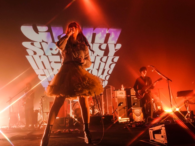 ライブは亀本がクールなギターリフを閃かせ、R&Bのグルーブを持つ「シグナルはいらない」でスタート。フレアスカートを揺らしながら、ハンドマイクで歌う松尾のパフォーマンスがステージに華やかさを加える。この日、キーボード奏者も含む5人編成でライブに臨んだGLIM SPANKYはそこから2時間半たっぷりとアンコールも含め全22曲を披露。セットリストの軸になっていたのはもちろん、「シグナルはいらない」をはじめ、以前にも増して振り幅の広い曲に挑んだ『Into The Time Hole』からの8曲だ。
