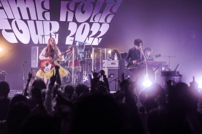 GLIM SPANKYが12月21日(水)、東京・昭和女子大学 人見記念講堂にて全国ツアー<Into The Time Hole Tour 2022>のファイナル公演を開催した。最新アルバム『Into The Time Hole』を引っ提げて行われた同ツアー最終日のライブレポートをお届けしたい。