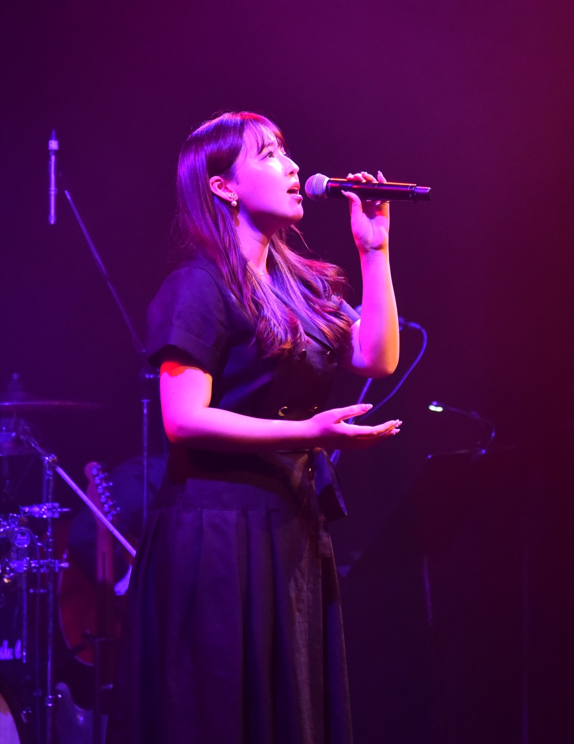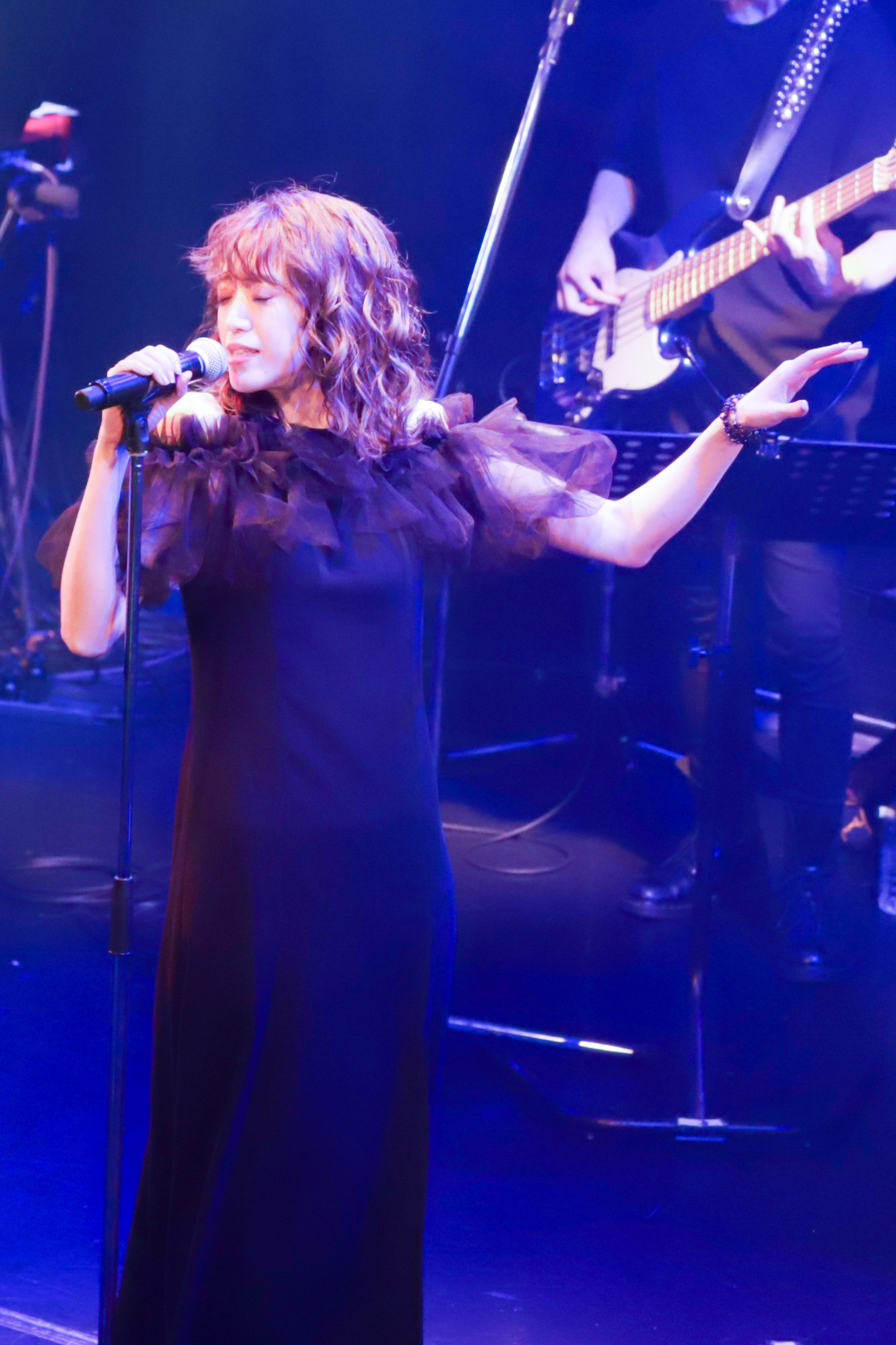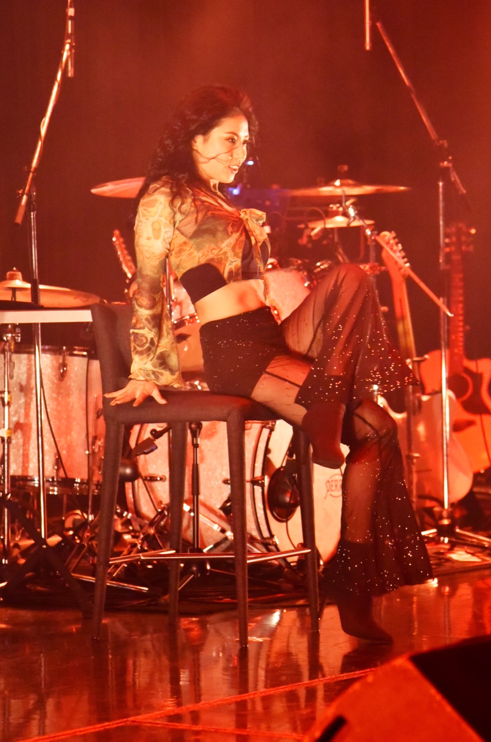 黒いドレスを着たCruはしっとりとした夜の雰囲気を引き連れてオンステージ。開口一番、彼女が「It’s show time!」というと、自然と拍手が沸き起こり、ショーは「TATALI-LA」で華やかに幕開け。すると、新宿ReNYはたちまちラグジュアリーな大人のクラブに大変身。Cruはジャズシンガーのように自由にスキャットを操り、観客たちにはアルコールではなくその歌に酔いしれる。「火種」はスリットの入ったドレスにブーツを合わせた姿で、ケンケンしたり回転する独特のパフォーマンスで観客を釘付けに。そこから言葉をつぶやくような静かな歌い出しから曲の中にすっぽりと入り込み、じょじょに拳に力をためこんでいって、エモーショナルな歌を爆発させていった「#Follow#Me」で、観客全員を陶酔状態へともっていく。そうして、最後はシーンと静まり返った場内にリスナーへの想いを込めた「心音〜sing on〜」を届け、まさに頭から最後まで濃厚なCru劇場を展開して観客を見事に悩殺してみせた。