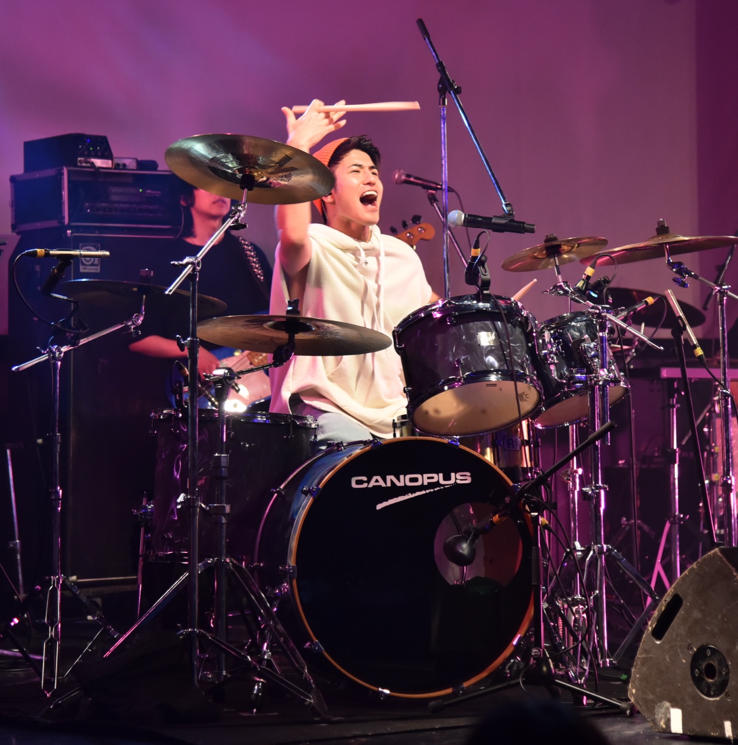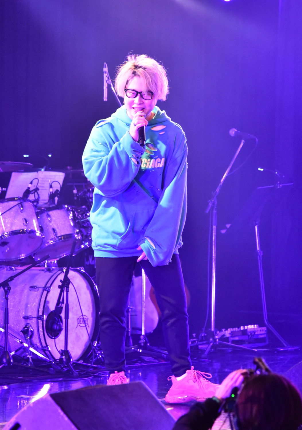 ヴァイオリンに続いて、ステージのフロントサイドにセッティングされたのはドラムセット! そうして「ReadyLady」のトロピカルなサウンドに合わせて超絶元気なオーラを放ちながら登場したのは、17LIVEイベントを初期からずっと支えてきた鈴木龍二。「よかったら声聞かせて〜!」と“いやさっさー”をシンガロングさせ、盛り上げた後は、間髪入れずに「千本桜」のドラム演奏を投下。演奏中にはバンドのドラムに鈴木が「うりゃ!」と叫んで食ってかかり、ドラマー同士の熱血バトルを展開。ド迫力のプレイに場内は大興奮。「ヤバイ、楽しい」と汗だくで叫んだ鈴木は、この後MCで西川貴教のサポートドラムをつとめている現場について触れ「イチナナ背負って風穴開けるっていってきたけどプロの現場は厳しくて」と本音を吐露し、悔し泣き。「それでも絶対諦めねぇで食らいついていって、何がなんでも風穴開けるから」と決意を込めて「Change My Life」を激唱。「俺たちで変えてこうぜ!」と再度みんなに呼びかけ、汗だくのままステージを去っていった。