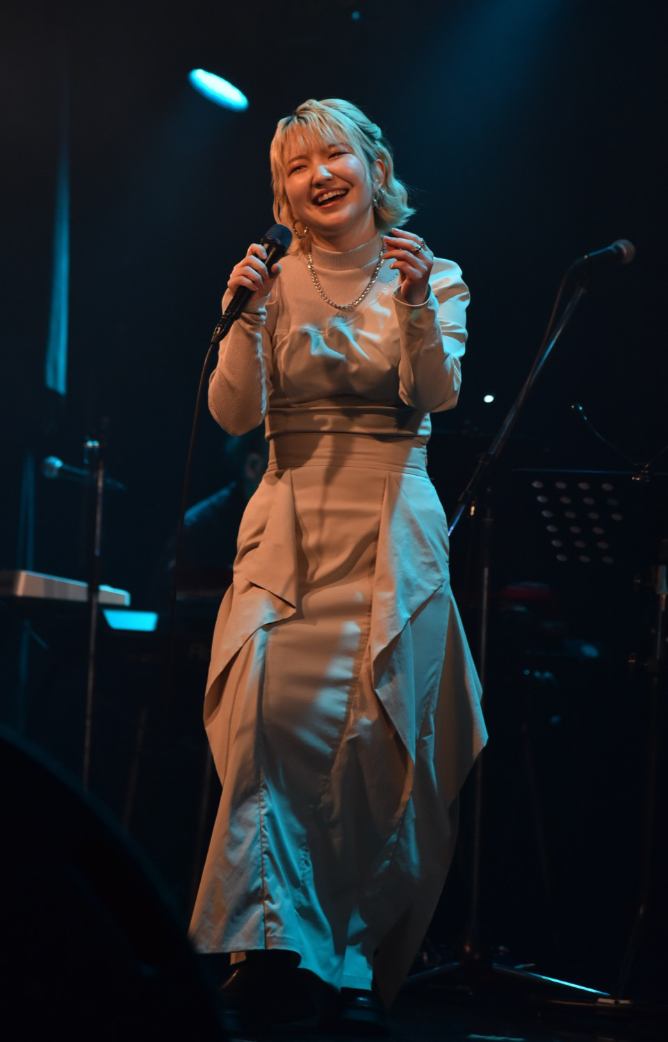 九州から3カ月前に上京してきたばかりのちさきが舞台に登場すると、この日のために地元から応援にかけつけたという彼女の家族が大きな声援をおくる。そうして、歌い出したのは椎名林檎の「丸の内サディスティック」。スウィングするジャジーなグルーヴに合わせて観客はすぐにクラップを始め、体を揺らしだす。そのなかでちさきは見事なアルトヴォイスを立ち上がらせ、リズムをキャッチ。その歌に引き寄せられるように、ピアノも楽しそうにアドリブ演奏を入れていく。華やいだムードに場内が染まっていく。ストリートで歌い続け、東京でも路上ライブを続けているという彼女。自分がこのようなイベントに出られたのは「リスナーさんが応援してくれたお陰」と伝えたあとは、応援してくれた人々に感謝の気持ちを伝えるように、絢香の「ありがとうの輪」を心を込めて熱唱していった。