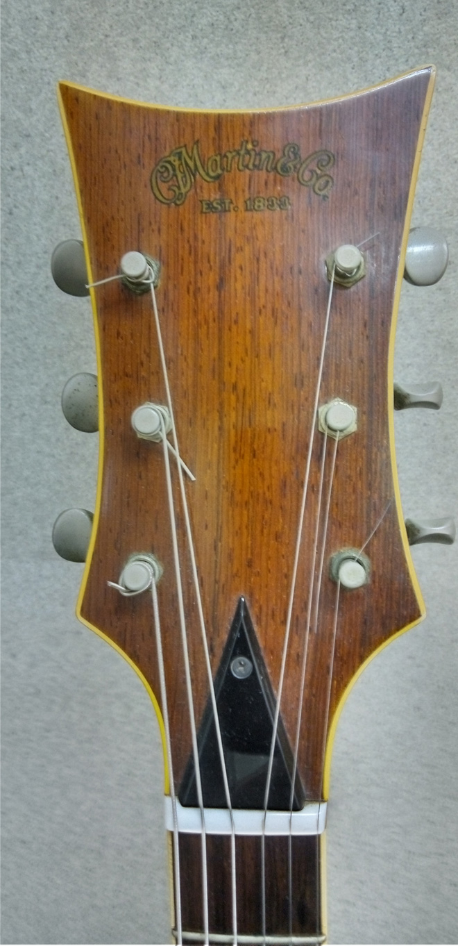 いやいや、新年早々謝らんといてください。追加写真ありがとうございます。やはりアコギというより、いわゆるピックギターなんですね。それにしても謎なギター。ピックガードを後付けさせたとすればチャキですらないのかも。そしてこちらもレアなマーチンGT75。アーチドトップのF-50から更に一歩進化してGT75になったと系譜をみれば、なるほどそういうことなのねと納得できる一本なのですけど、いきなりGT75を見ると「マーティン、どしたの?」ってなってしまうような異端児ですよね。ソリッドのEシリーズもチャレンジの痕跡。1960~1970年代のギターってある意味カオスで最高に魅力的なモデルが多いです。(JMN統括編集長 烏丸)