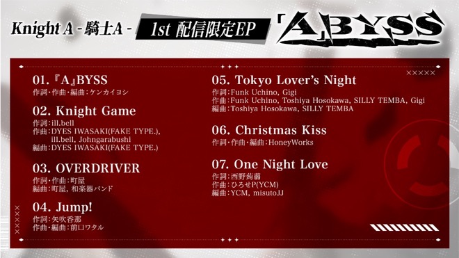 Knight A – 騎士A -が2022年12月19日、自身初の配信限定EP『『A』BYSS』を配信リリースした。同EP収録楽曲より「Jump!」のミュージックビデオがオフィシャルYouTubeチャンネルにて公開となった。