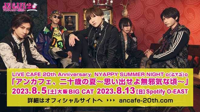 アンティック-珈琲店-ことアンカフェが、8月に<LIVE CAFE 20th Anniversary NYAPPY SUMMER NIGHT o(≧∀≦)o「アンカフェ、二十歳の夏〜思い出せよ無邪気な頃〜」>を開催することが決定した。