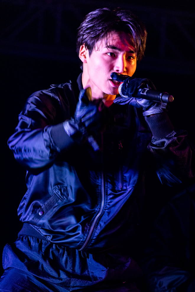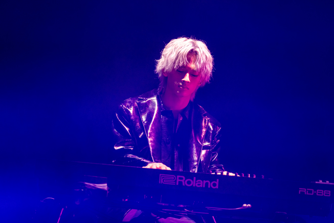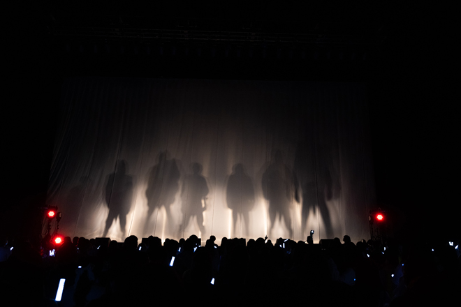 開演を待ちわびるWindyの期待で膨らむ場内に、重低音のビートが轟き始めると、紗幕へ雄々しく立つ6人のシルエットが映し出された。さあ、ライブのはじまりだ。